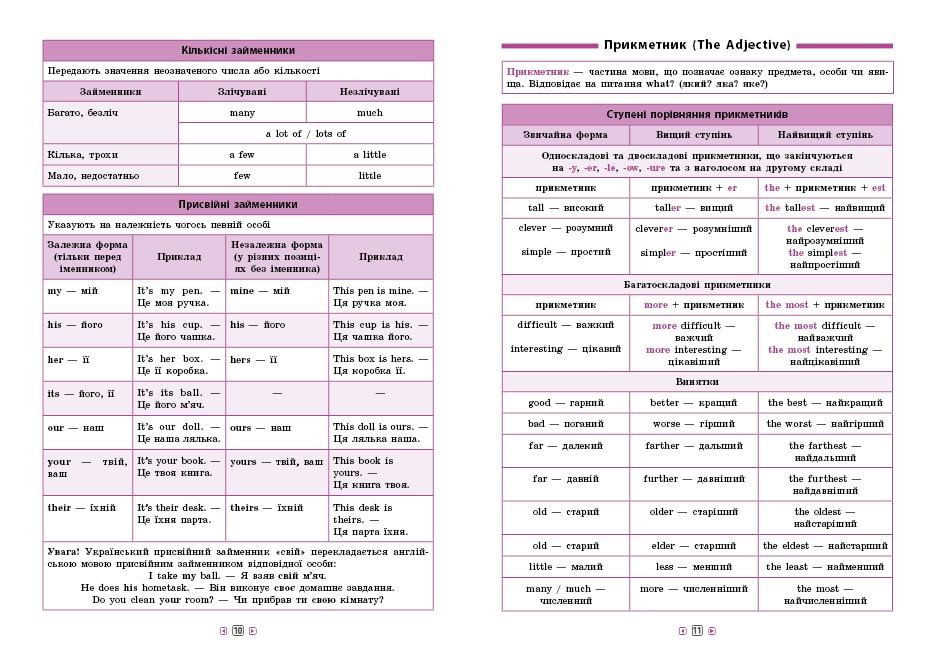 Довідник з англійської мови допоможе учням 5–6 класів покращити свої знання з предмета та підготуватися до самостійних чи контрольних робіт, а також до незалежного оцінювання. Матеріал у посібнику — правила, приклади до них та винятки — подано в таблицях, що спрощує пошук потрібної інформації. Працювати з довідником зручно й легко!