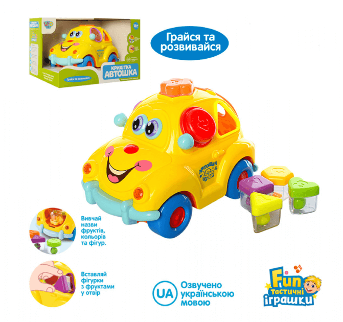 Розвиваюча іграшка «Автошка» спеціально створена для непосидючого малюка, це і іграшка – сортер і музично-навчальна іграшка – каталка. Малюк зможе вчитися граючи.