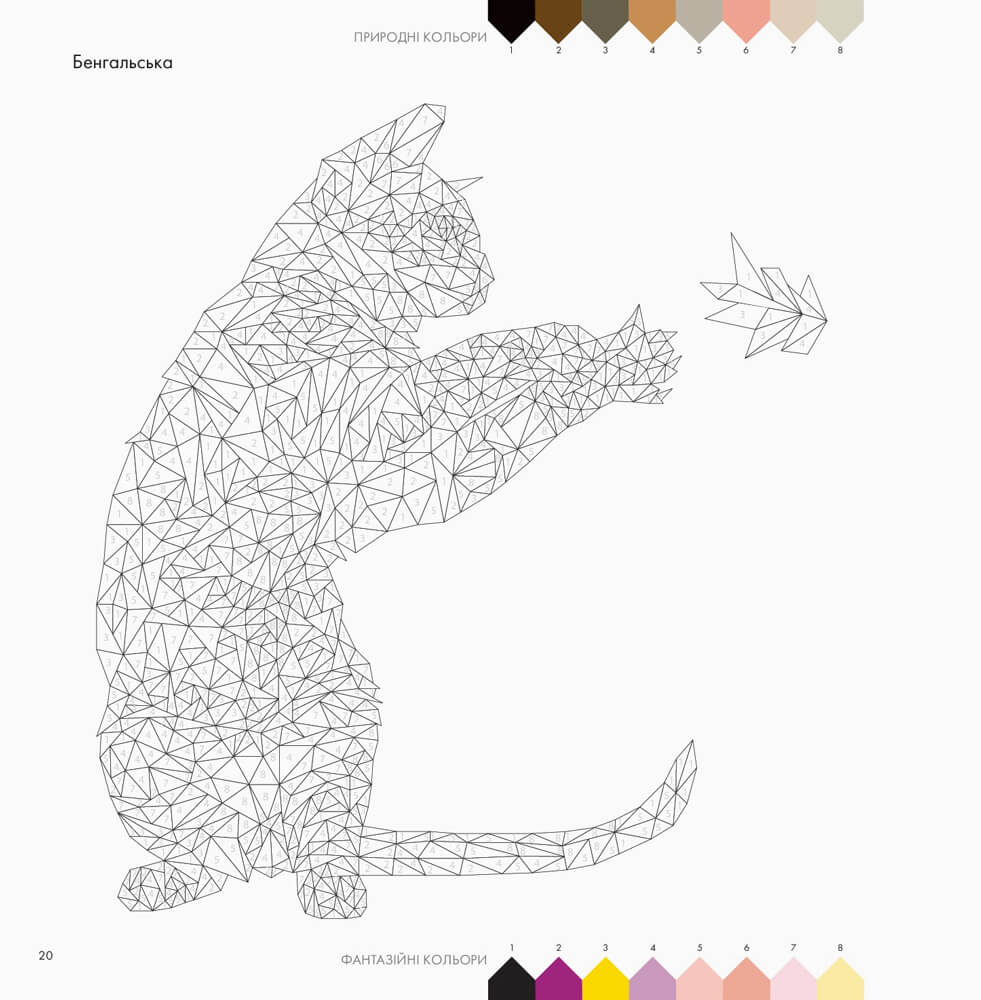 Любите котиків, так? Якщо б ви їх не любили, навряд чи б гортали ці сторінки. Тож вітаємо! Ця унікальна книга допоможе вам виразити свою симпатію до них ще й у кольорі. Тут вас зустрічають: чарівний шотландський висловухий кіт, грайлива бенгальська кішка, добрий велетень мейн-кун та багато інших. Коти тільки й чекають, коли ви надихнете в них життя. Кожний муркотун має свій власний номер, отже ви не заплутаєтеся. Можете одягнути пухнастиків у шубки їхнього природного кольору, а можете пофантазувати й використати фантазійні кольори.