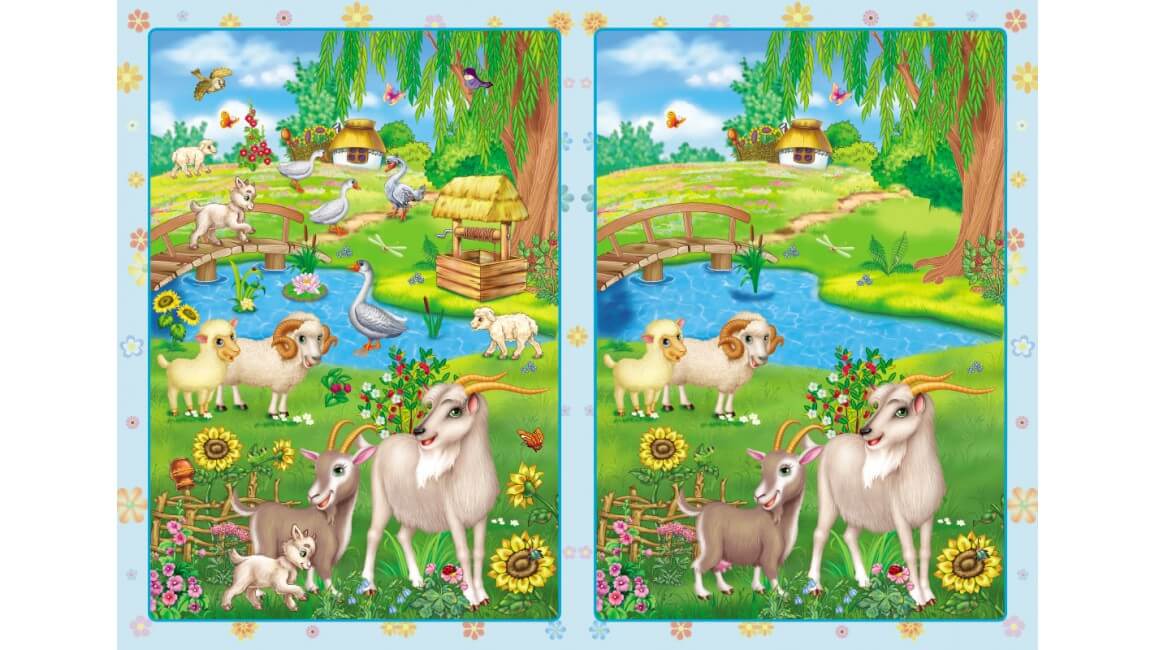 Спочатку потрібно уважно розглянути малюнок ліворуч і визначити, яких елементів бракує на малюнку праворуч. Потім вибрати відповідні наліпки і зробити обидва малюнки однаковими.