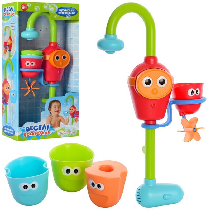 Вода, льющаяся из крана, создает поток. Этот поток позволяет детям непрерывно играть с помощью трех различных стаканов.