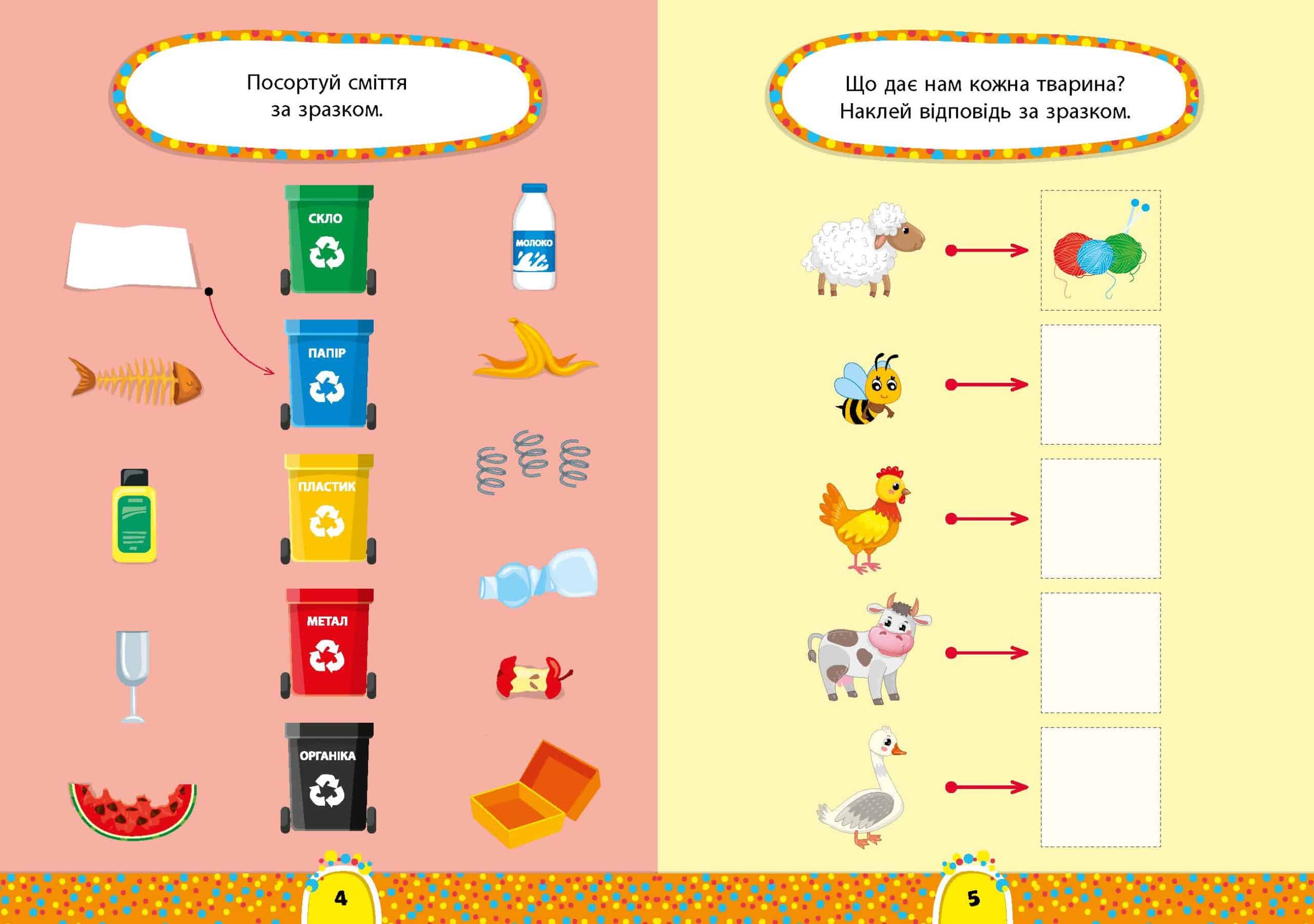 Книжка «Світ навколо. 5+» допоможе перевірити й закріпити знання дитини про навколишній світ. На кожній сторінці подано одне завдання, спрямоване на повторення чи вивчення тварин, їхніх улюблених ласощів і користі для людини, уявлення про розміри й вагу предметів, розуміння просторових відношень і того, що людина сприймає завдяки органам чуття, розрізнення часу доби й пір року. Тематичні наліпки доповнять й урізноманітнять роботу. Видання призначене для спільної роботи дорослих з дітьми віком від п’яти років.